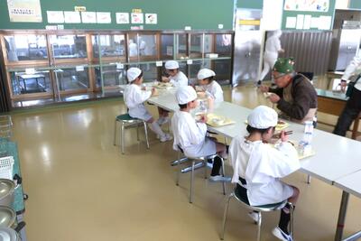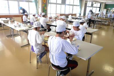 新1年生もすっかり桃っ子の一員です。おいしい給食を楽しんでいます。