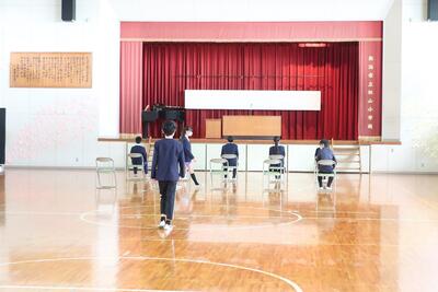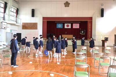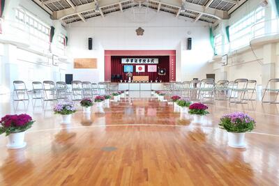 4、5年生ががんばってくれたおかげで、卒業式の会場が完成しました。明日は、午前中は修了式、午後は卒業式です。桃っ子みんなで力を合わせてすてきな一日にしましょう!!