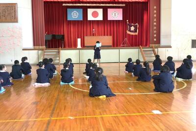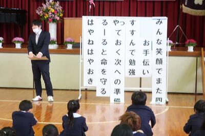 春休みの生活についてのお話がありました。規則正しい生活を心がけて、4月にまた元気な笑顔を見せてくださいね。