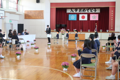 桜の花が咲き誇る気持ちのよい陽気の中、令和7年度の入学式が行われました。
