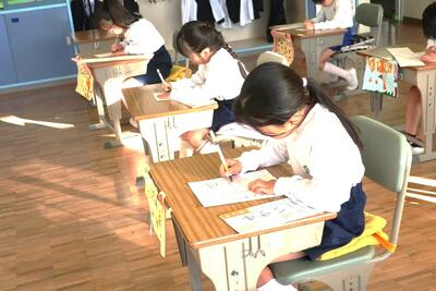 1、2年生は、フェルトペンでの硬筆に挑戦しました。