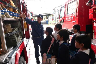 消防署の中を見せてもらったり、仕事のことを教えてもらったり、授業での学びをさらに深めることができました。