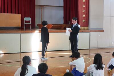 集会の後には、夏休みに取り組んだ読書感想文の表彰がありました。