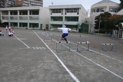 50mハードル、走り幅跳び、ボール投げの中から、挑戦したい種目を選び、新記録を目指して取り組みました。
