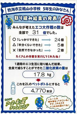 この後、家庭での調査活動や自分で決めたエコ大作戦に取り組みました。