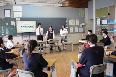 今年度も、静岡県高校生平和大使が出前授業のために来校してくれました。