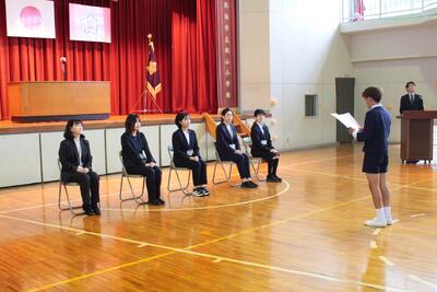 新6年生の代表者が、桃山小学校のよさを伝えました。これから1年間よろしくお願いします!