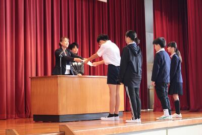 児童会執行部、委員会の委員長・副委員長、グループリーダーが、校長先生から任命書を受け取りました。